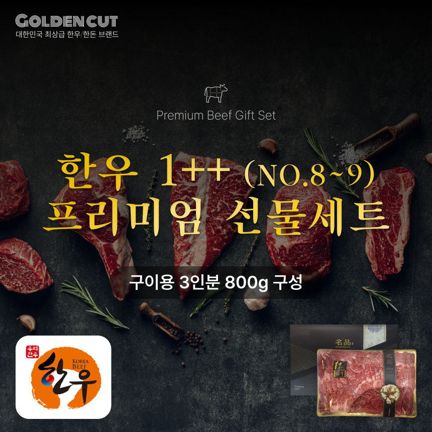 The무라 GOLDENCUT 특급 명품 한우 1++ 선물세트 구이용 3인분 800g 구성