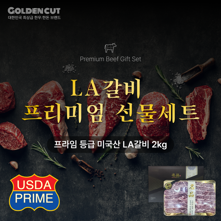 The무라 GOLDENCUT 미국 프라임 등급(등급up) 미국산 LA갈비 2kg 선물세트 구성
